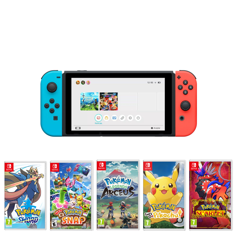 Inbegrepen: 1x Nintendo Switch, 1x Dockingstation, 2x Joycon’s, 1x HDMI kabel, 1x Adapter, 1x Opbergdoos en 5 spellen waaronder: Pokémon Sword, Pokémon Snap, Pokémon Legends: Arceus, Pokémon: Let’s Go, Eevee! en Pokémon Scarlet.